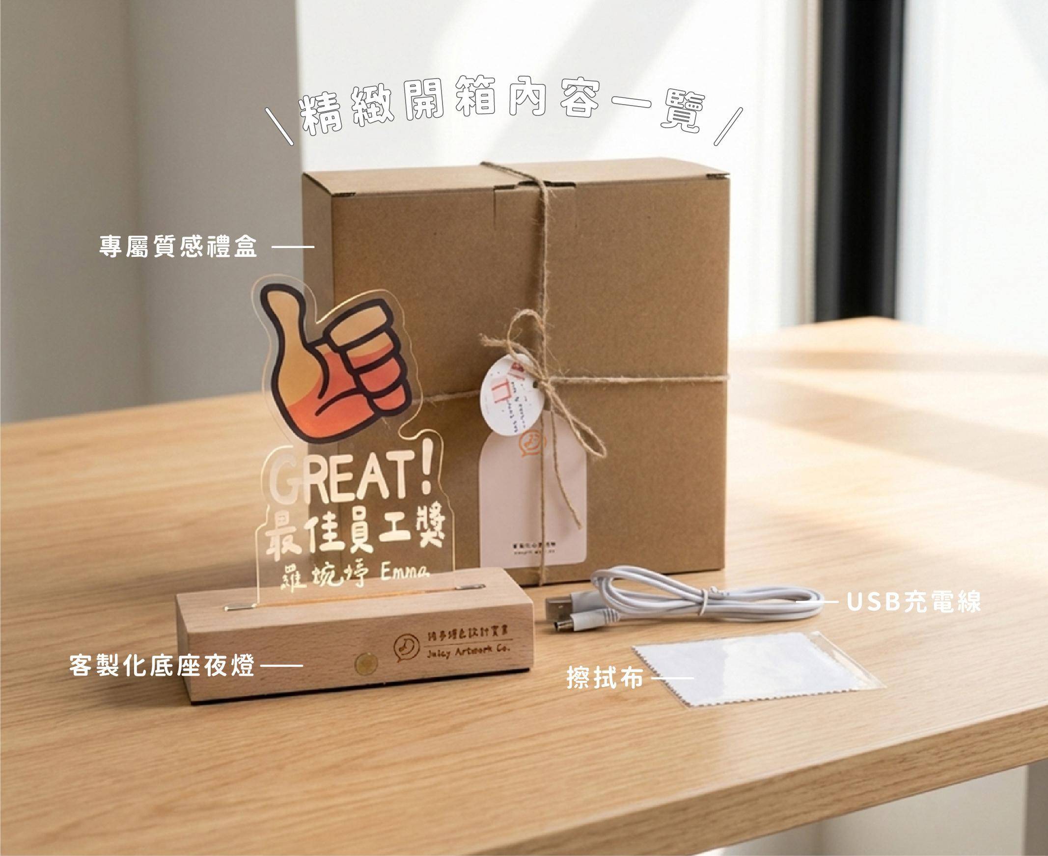 • 原木 LED 夜燈 1 個,可免費刻字